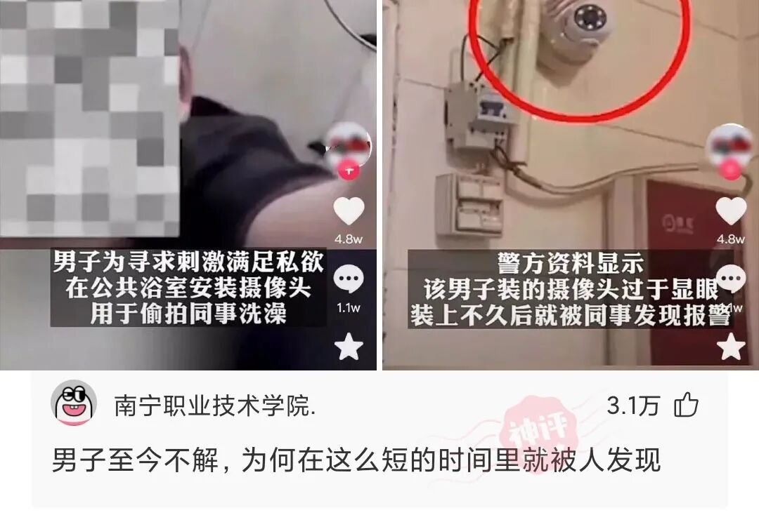 【沙雕问题9】男子担心女同事在浴室滑倒,特意在浴室安装了摄像头以防万一。
