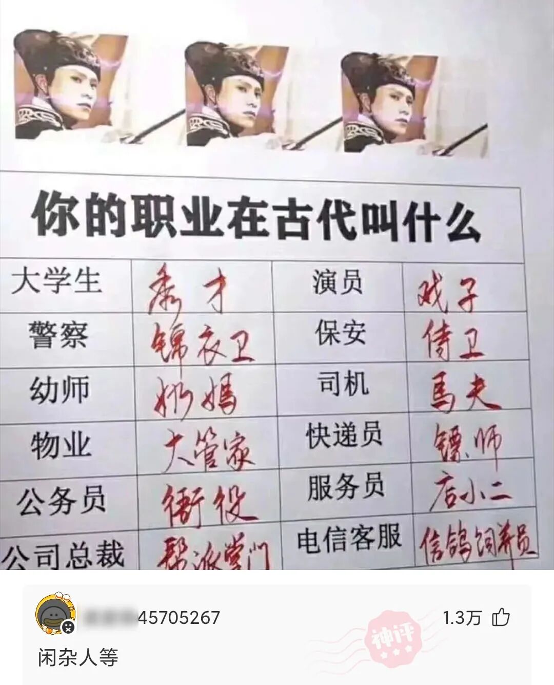 【沙雕问题7】兄弟们,你的职业在古代叫什么?