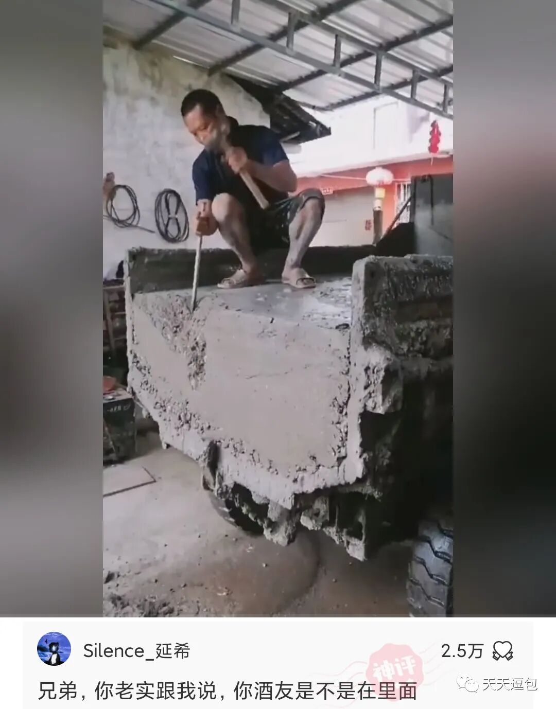 昨晚多喝了两杯,一车水泥忘记卸了!