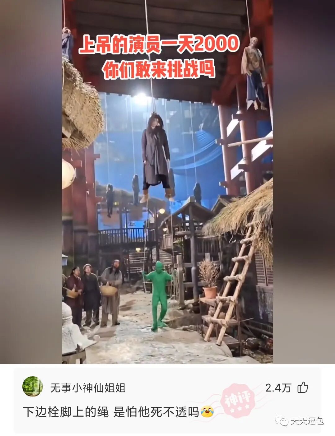 搏一搏,单车变摩托,上吊的演员天2000块一天,你们敢来挑战吗?