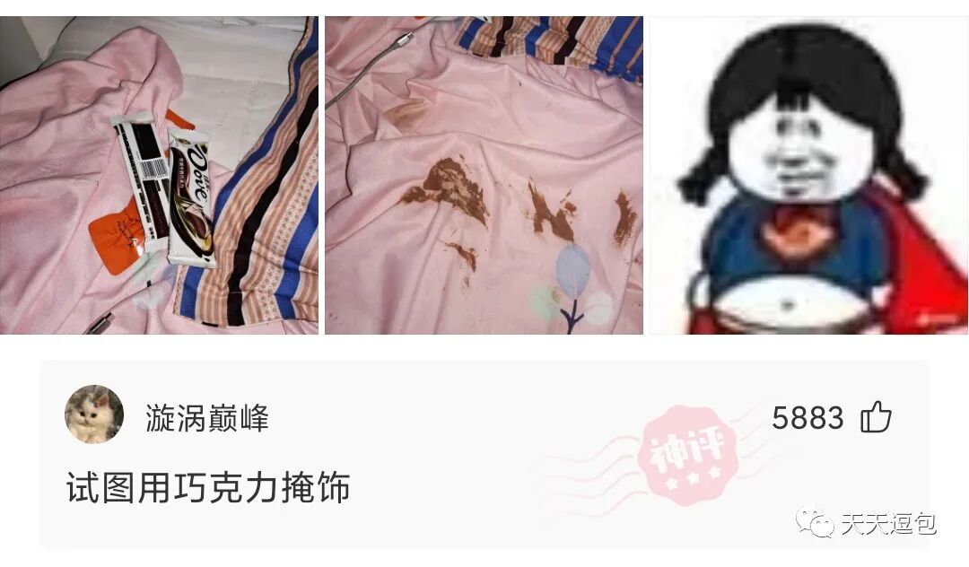 逗包们,巧克力糊床上了,咋整,在线等。。。