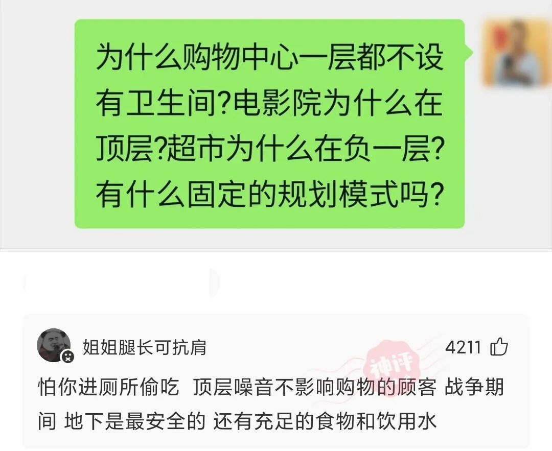 为什么购物中心一楼都不设卫生间?电影院为什么都设在顶层?超市为什么设在负一层?你们说这是有什么固定的规划模式吗?