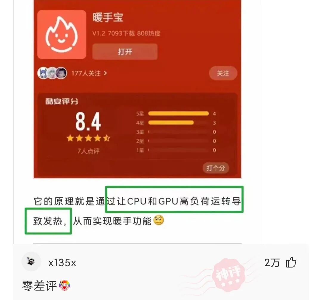 昨天逛应用商店的时候,无意间发现一款叫“暖手宝”的App,这瞬间勾起了我的好奇心,一看评分还挺高的,虽然只有七八个人打了分……