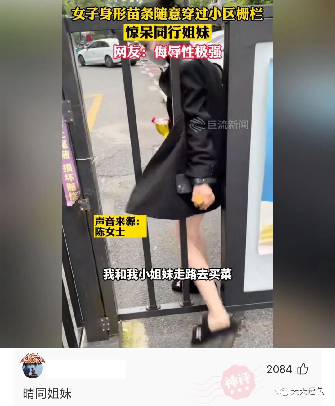女子身形苗条随意穿过小区栅栏,惊呆同行姐妹,网友:侮辱性极强!
