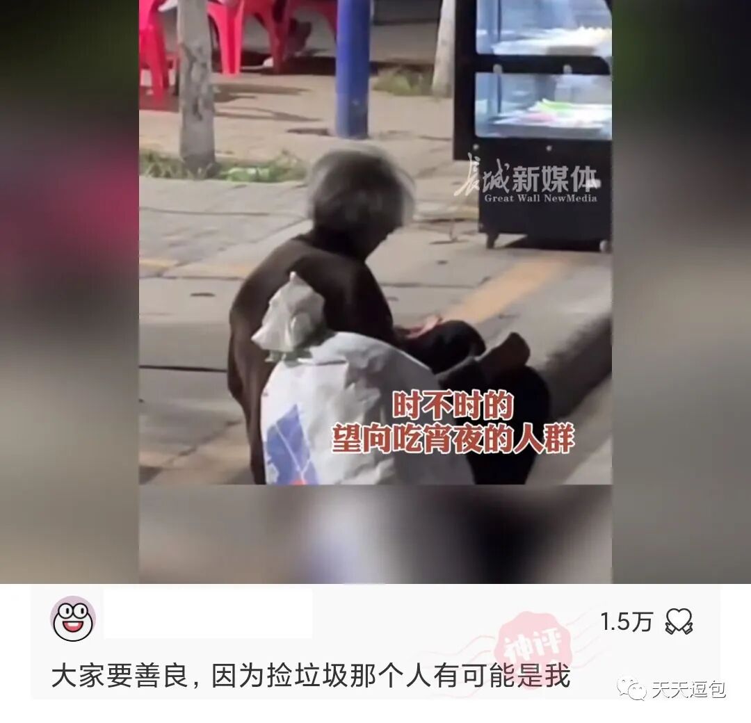 拾荒老人坐在夜市旁,时不时地望向吃饭人群,这时一位陌生人端去了一碗热面。。。
