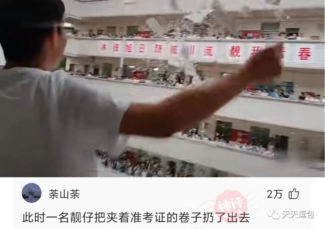 高考加油,此时此刻一位高三生正在向空中挥洒试卷!