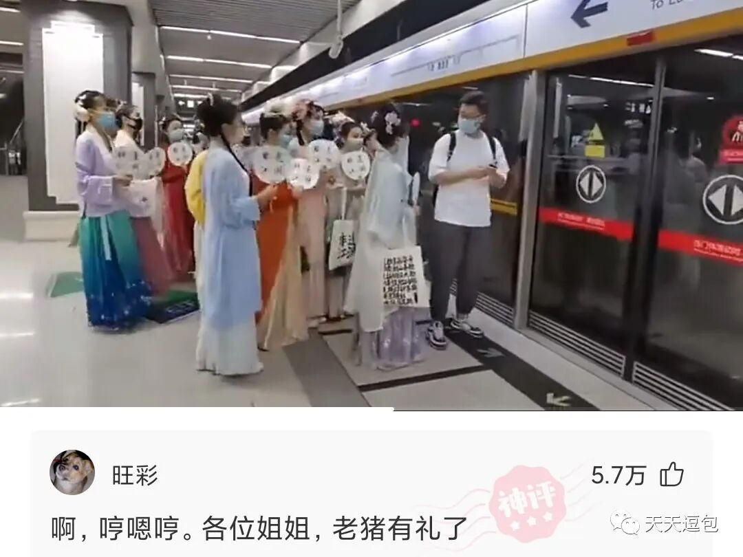 正在等地铁的小伙,突然变一群姑娘们围起来,你要是这个小伙,你会说什么?