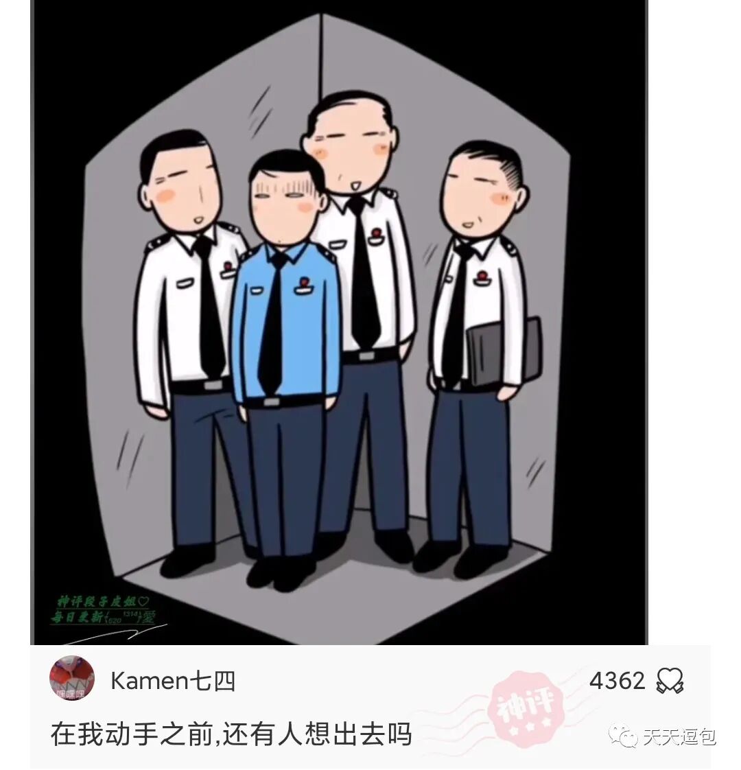 当进电梯发现被白衬警察包围时,蓝衬警察:电梯好像停了。。。