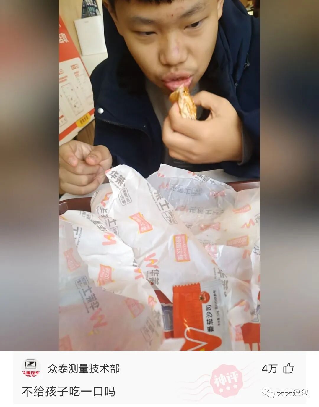 儿子想吃肯德基,做父亲的没钱,只能带他来华莱士,看着他第一次吃汉堡我也很心疼!