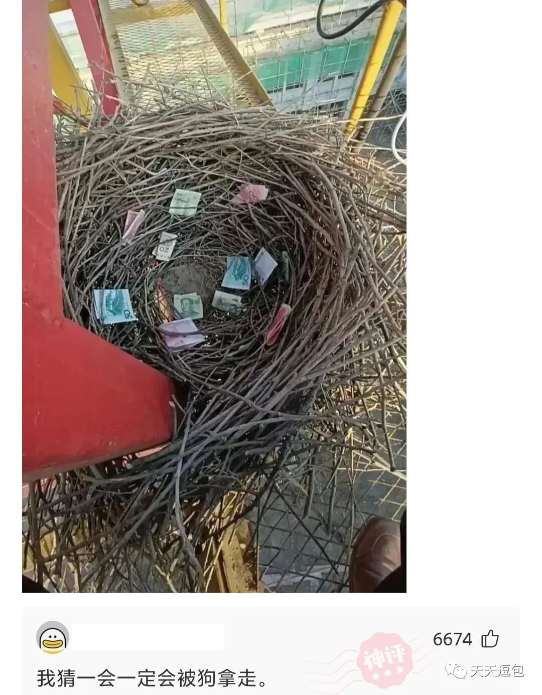 钱在鸟类的眼里,就是些花花绿绿的纸,没啥用!