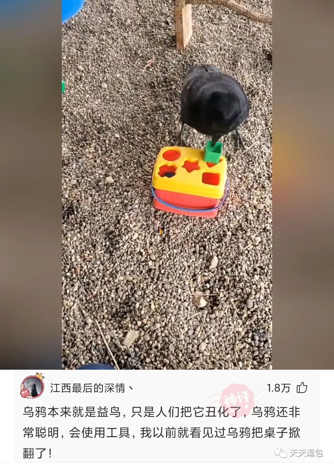 乌鸦这么聪明吗?这么高级的玩具都整的明明白白的,这智商能有多少?