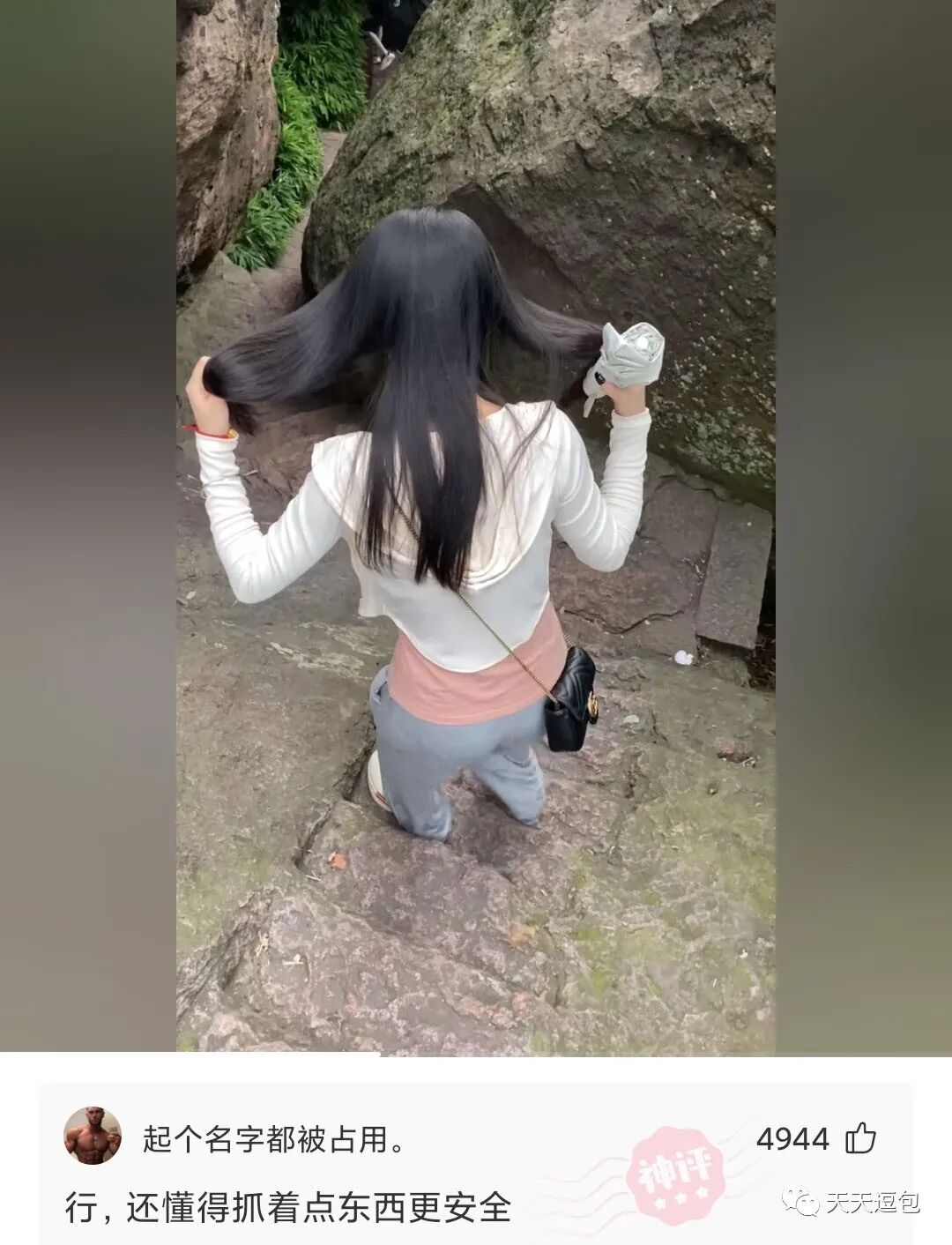 非要出来爬山,下不去了吧,回去的路可不好走呀。。。
