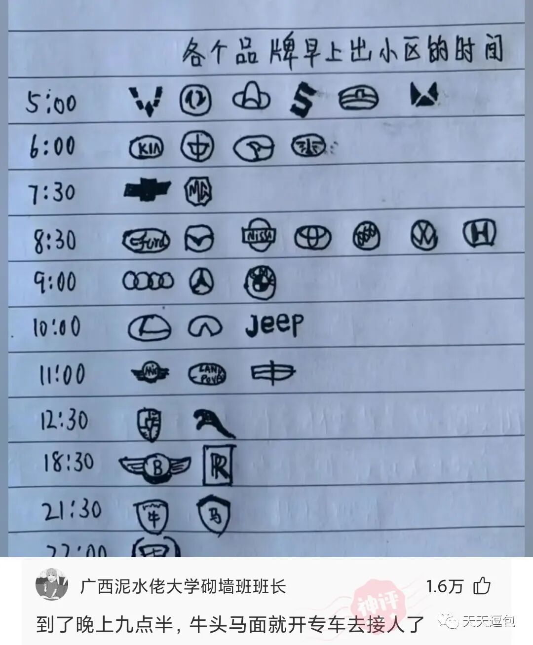 这是我总结出来的各个品牌出小区的时间表,请大家对号入座!