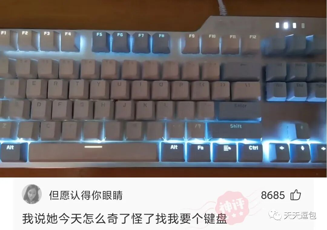 我就奇怪了,你们是怎么知道我对象给我买了新键盘的?