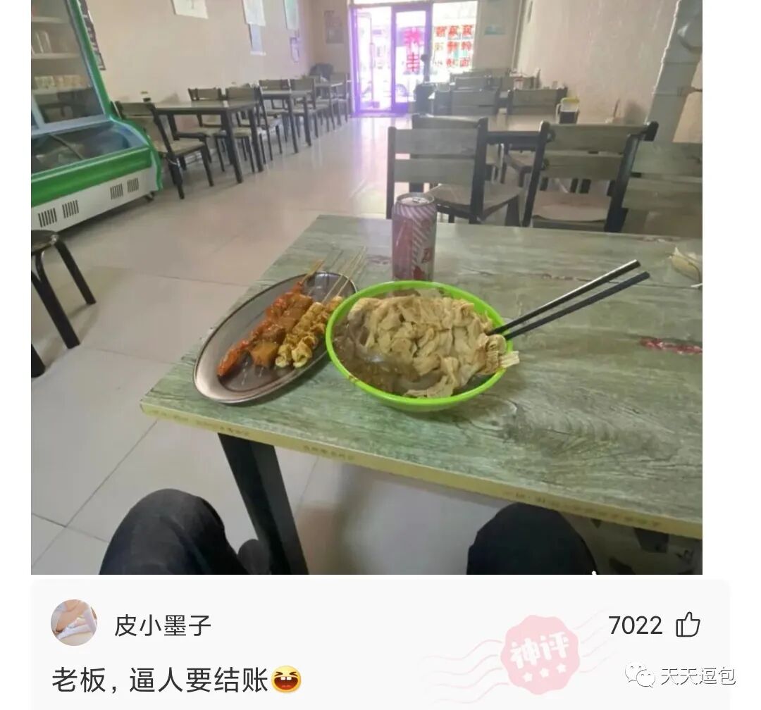 难得来吃一次麻辣烫,刚给我端上来,老板接了个电话说:白扯一下午就一个逼人!我该说些什么?