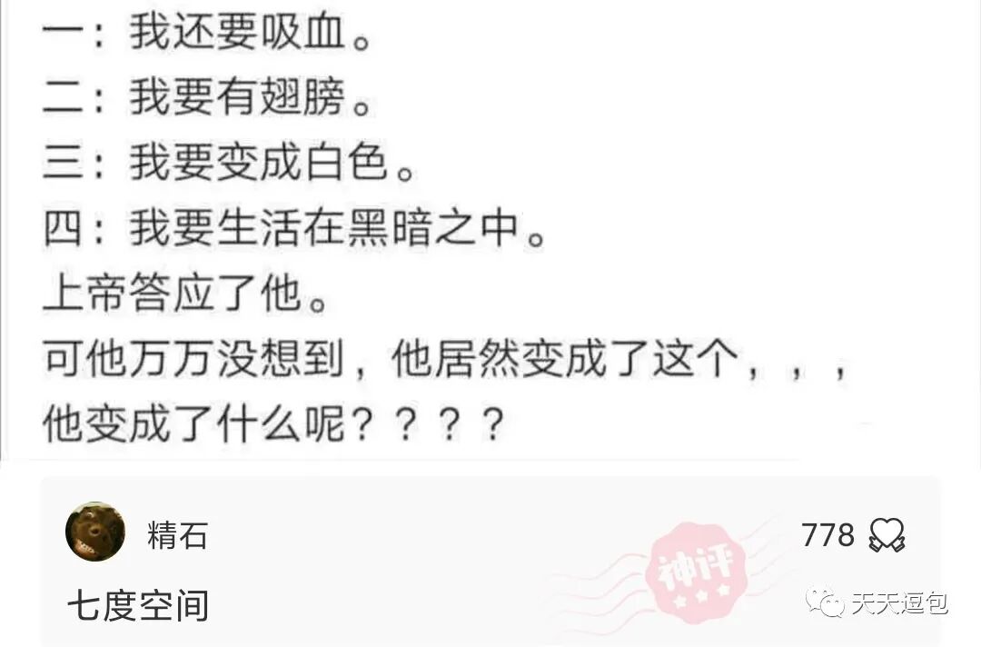 有一只蝙蝠,他死了,于是,他向上帝许了四个愿望。。。