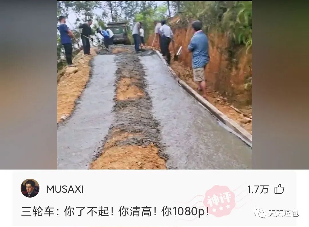 我们村自主发明的,这样修的路虽然样子不太好看,但确实节约又很实用!