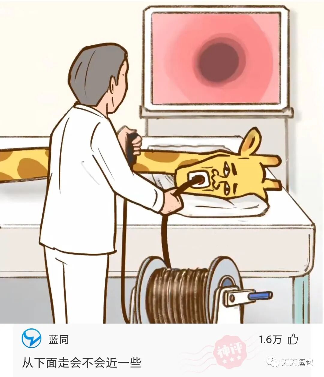 长颈鹿做胃镜,一定挺痛苦吧。