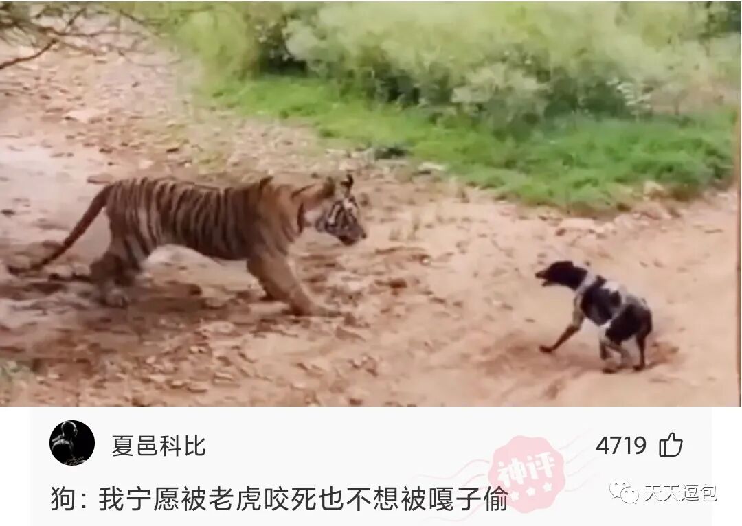 这狗子真虎,连老虎都敢惹,真是不想活了!