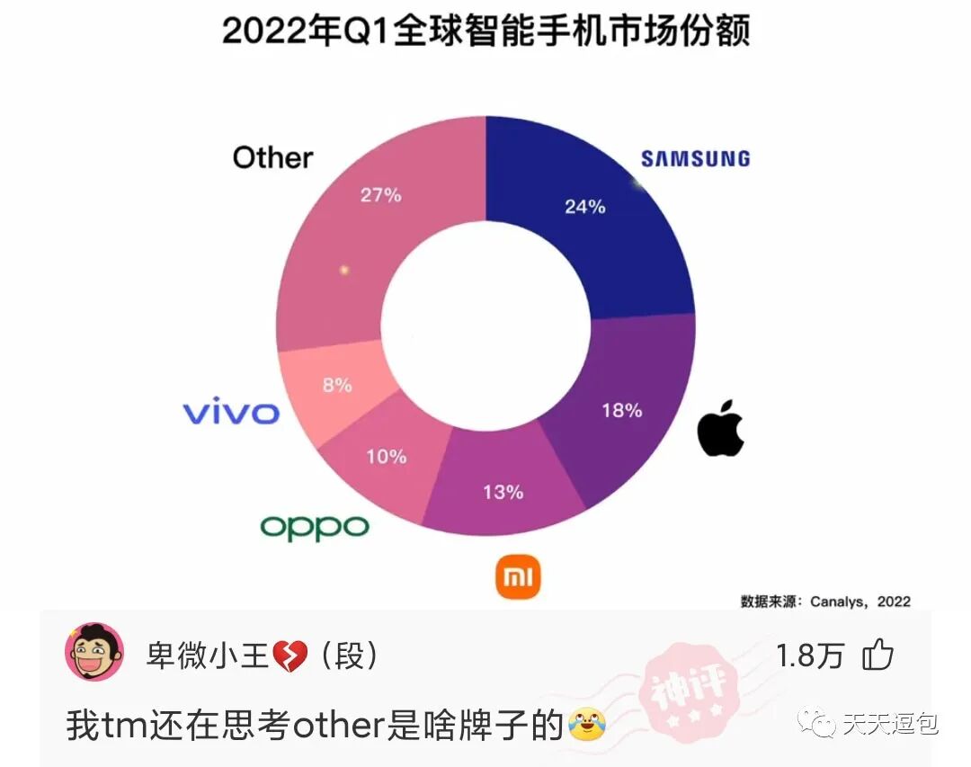 2022年第一季度全球智能手机市场数据已公布,都来看看你所用的手机份额占多少吧!