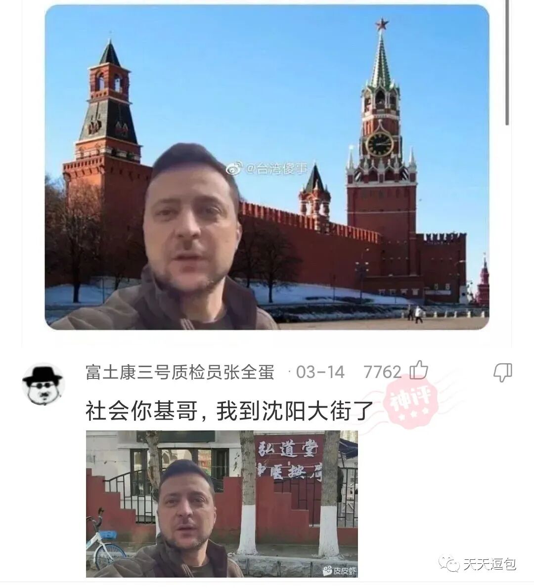 我是泽连斯基。我现在已经抵达克林姆林宫,我们已经取得了最终的胜利了。