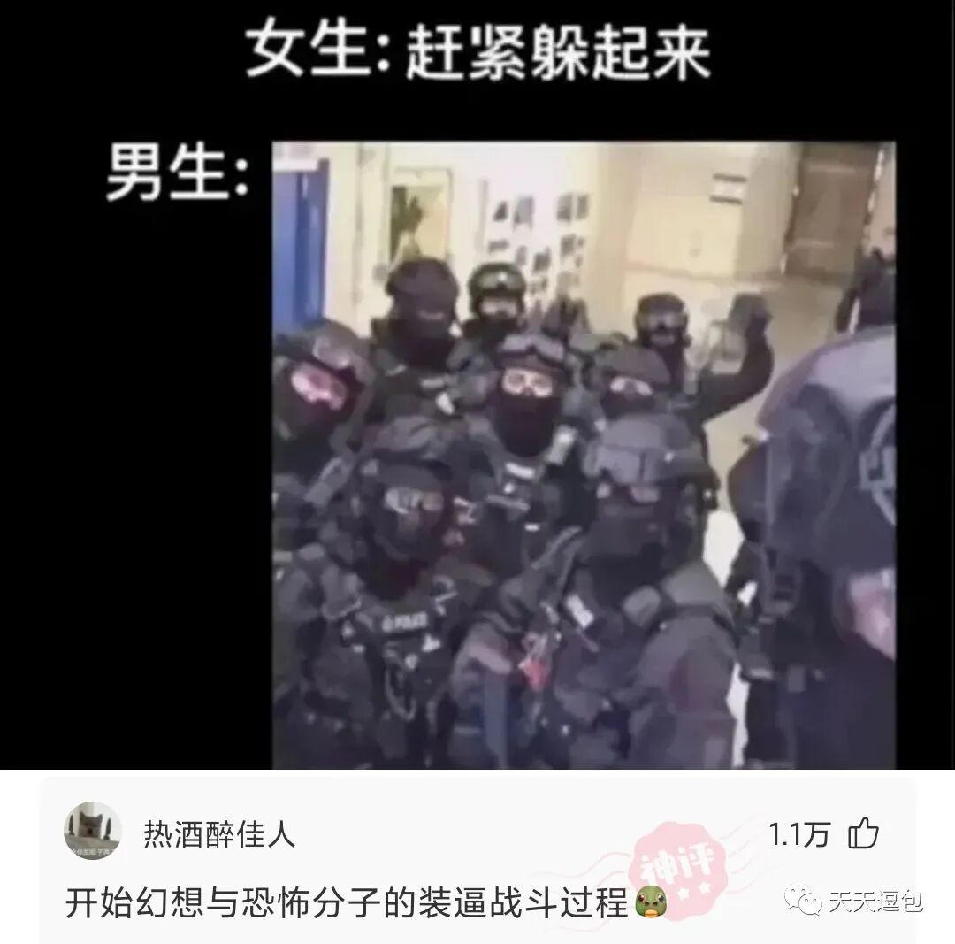 如果有恐怖分子进入学校,男生和女生会做出如何的反应?