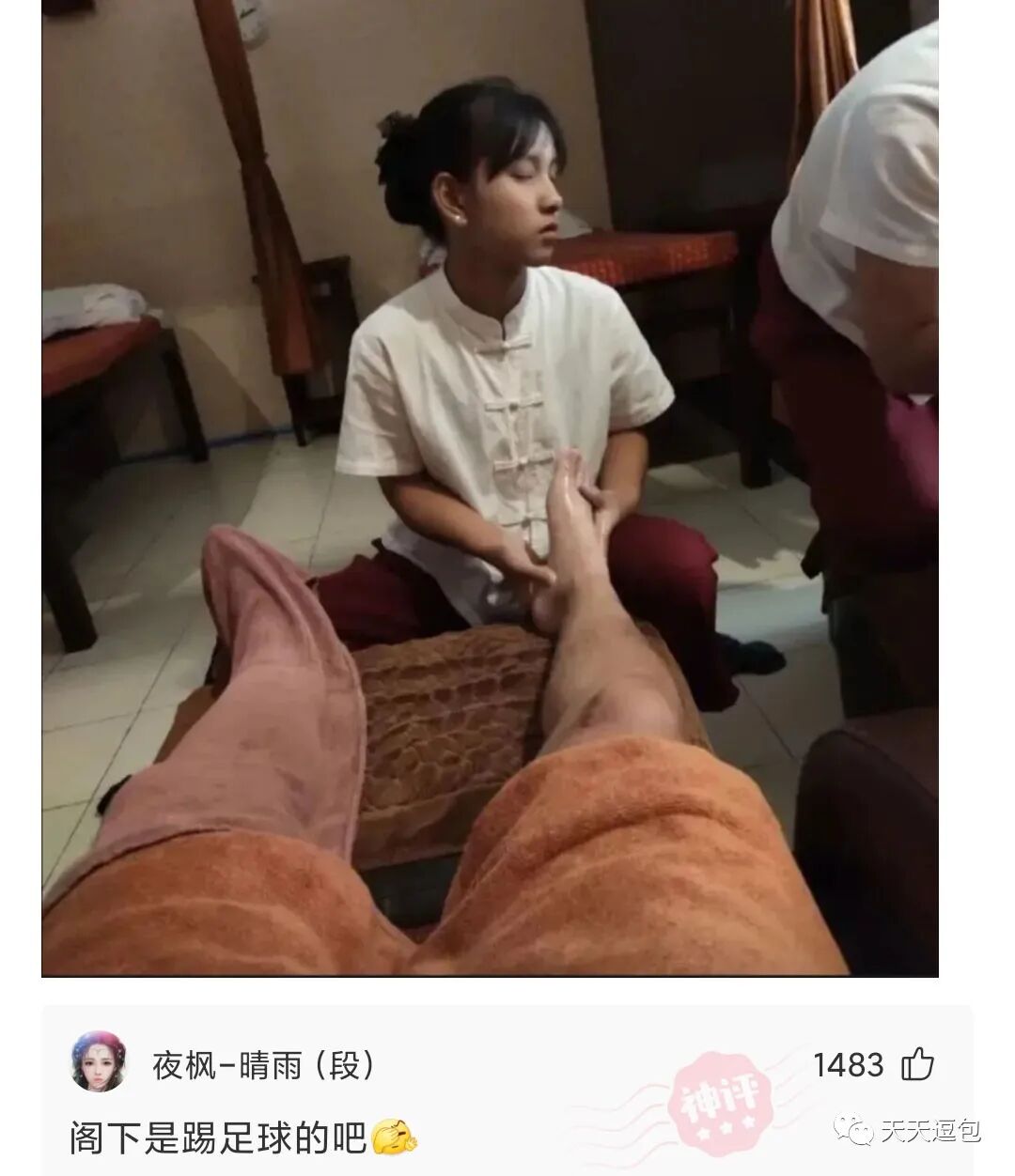 今天去按脚,这个小姑娘不知道咋回事,一直流泪,问也不说。我猜她大概是想家了吧。。。