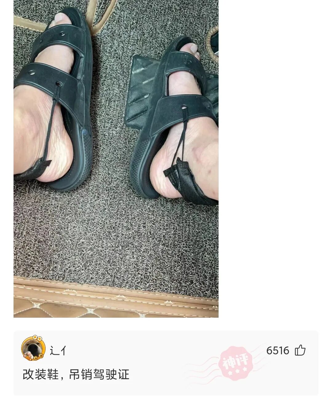 兄弟们,交警要查车了,我把口罩摘下来系拖鞋上这样就不算穿拖鞋开车了吧!