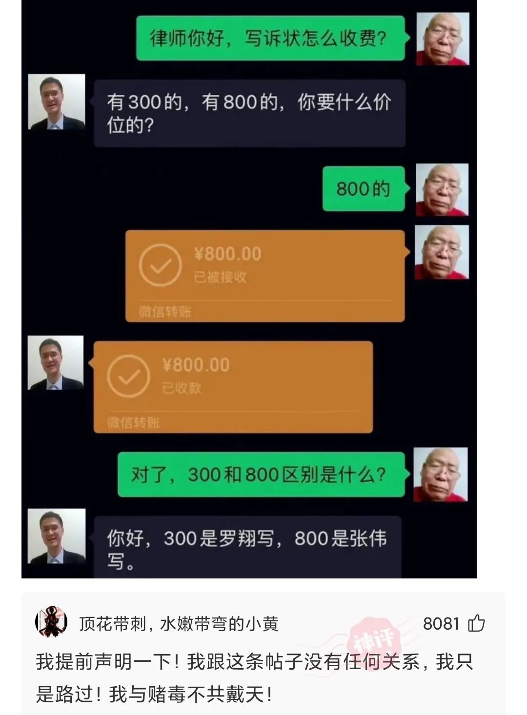 300块钱是我的诉状费,再给500顺便把张伟也送进去!