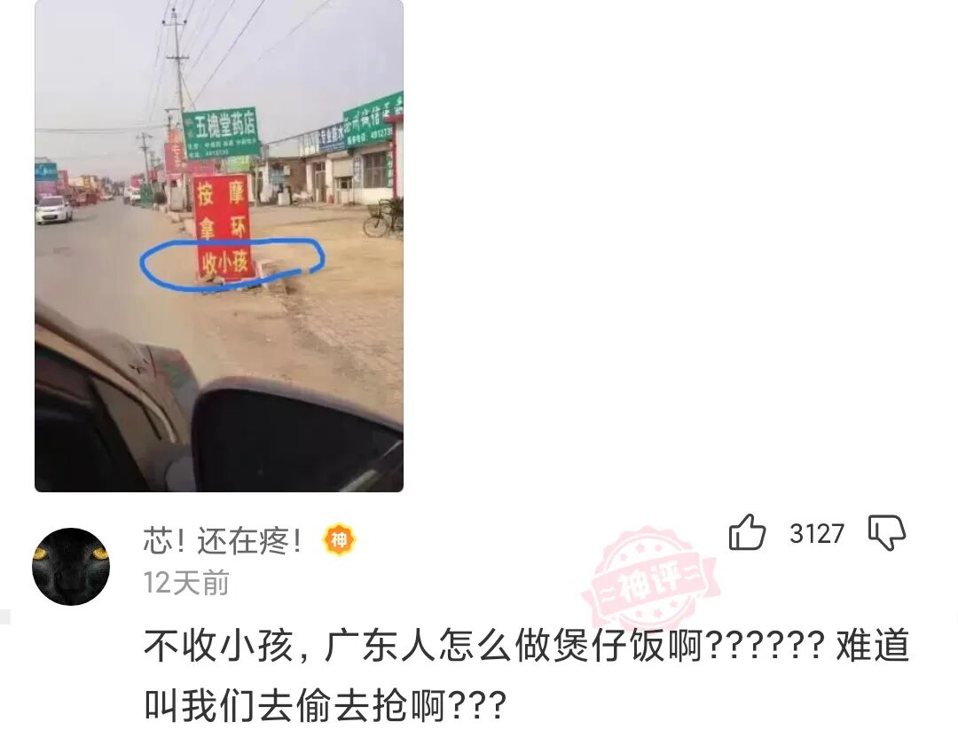今天去广东的一乡镇,在街道上看到了一招牌,上边写着”收小孩“,广东人干这事都不用背人了吗?