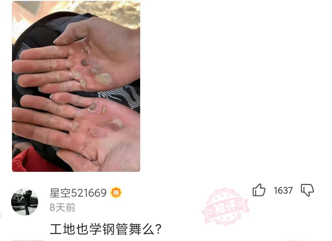 大家看看我的手,能猜出我在工地做什么工作的吗?