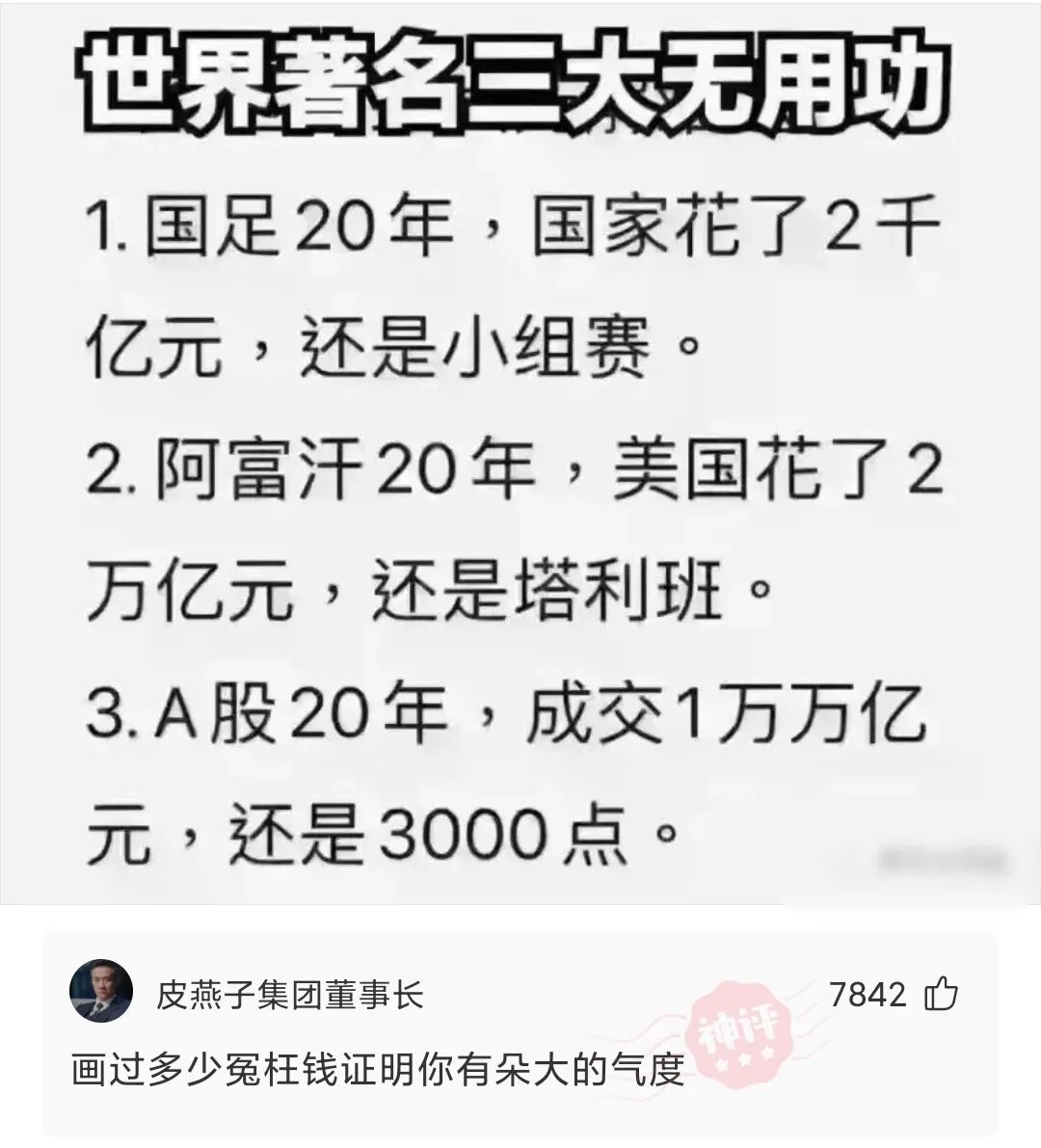 兄弟们,世界上著名的三大无用功,你们知道是什么吗?