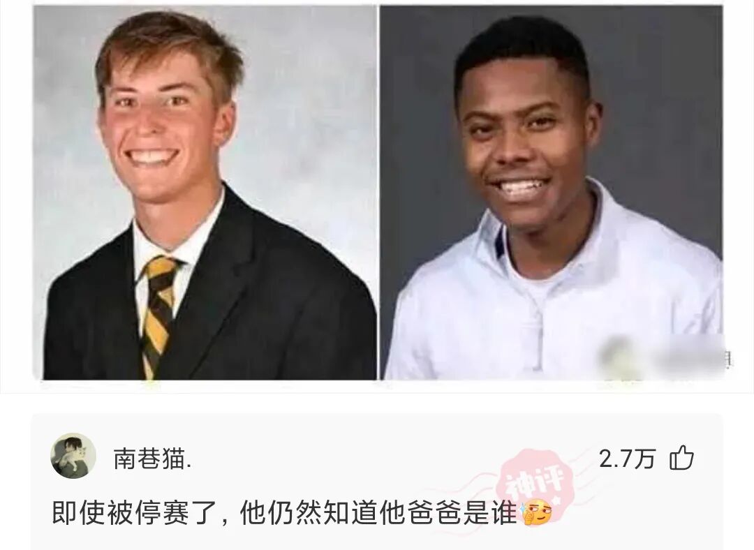 一名白人大学网球选手因在比赛中挑衅黑人对手“至少我知道我爸爸是谁”而被停赛。