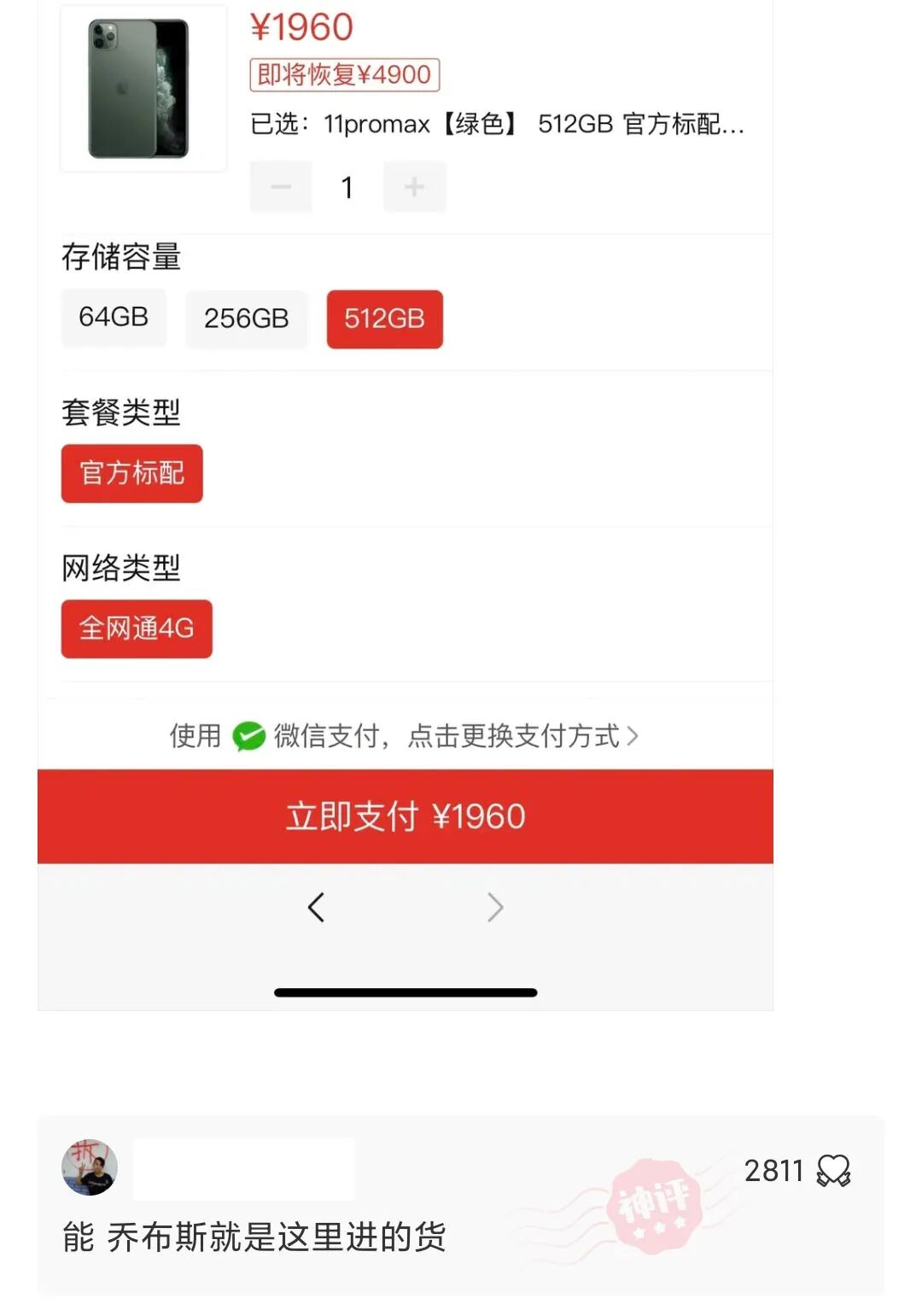 兄弟们,iphone11 promax512版本,拼多多才卖1960元,你们说这价格的苹果手机可以入手吗?
