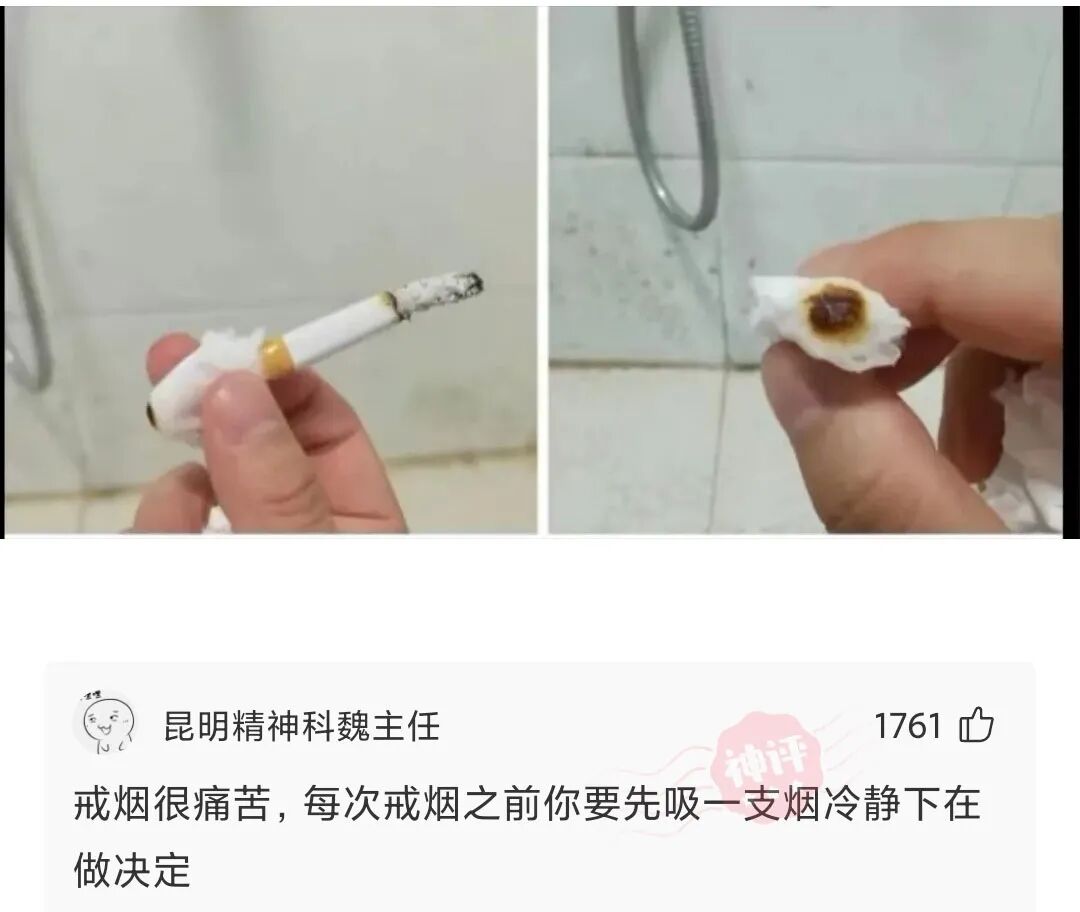 拿卫生纸包着烟头抽了半支烟就那么多尼古丁了,兄弟们,我思来想去还是下定决定要戒烟了!