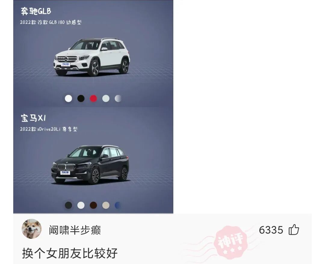 各位兄弟们,小弟手里有35W,想买一辆车,女朋友只认识奔驰和宝马,目前看中了1.3T的奔驰.GBL和1.5T的宝马X1,这两辆车哪个好啊?