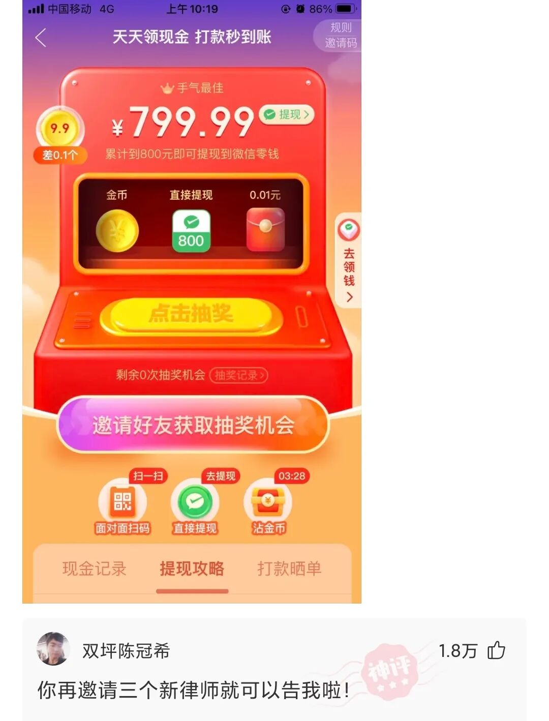 卧槽,我刚刚799.99抽到0.01了,显示800了,然后让我邀请好友,就变回去了,真是日了天了,没录屏,要是有录屏我是不是就可以告他了??