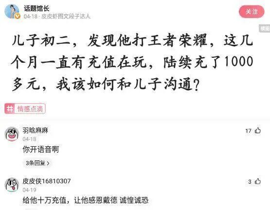 儿子上初二,发现他打王者荣耀,这几个月一直有充值在玩,陆续充了1000多元,请问我该如何和儿子沟通?