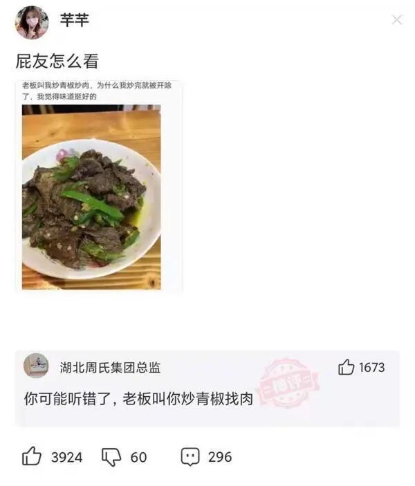 老板叫我去炒肉,为什么我炒完肉竟被开除了,我觉得我做的味道挺好的啊,到底是哪出了问题呢?