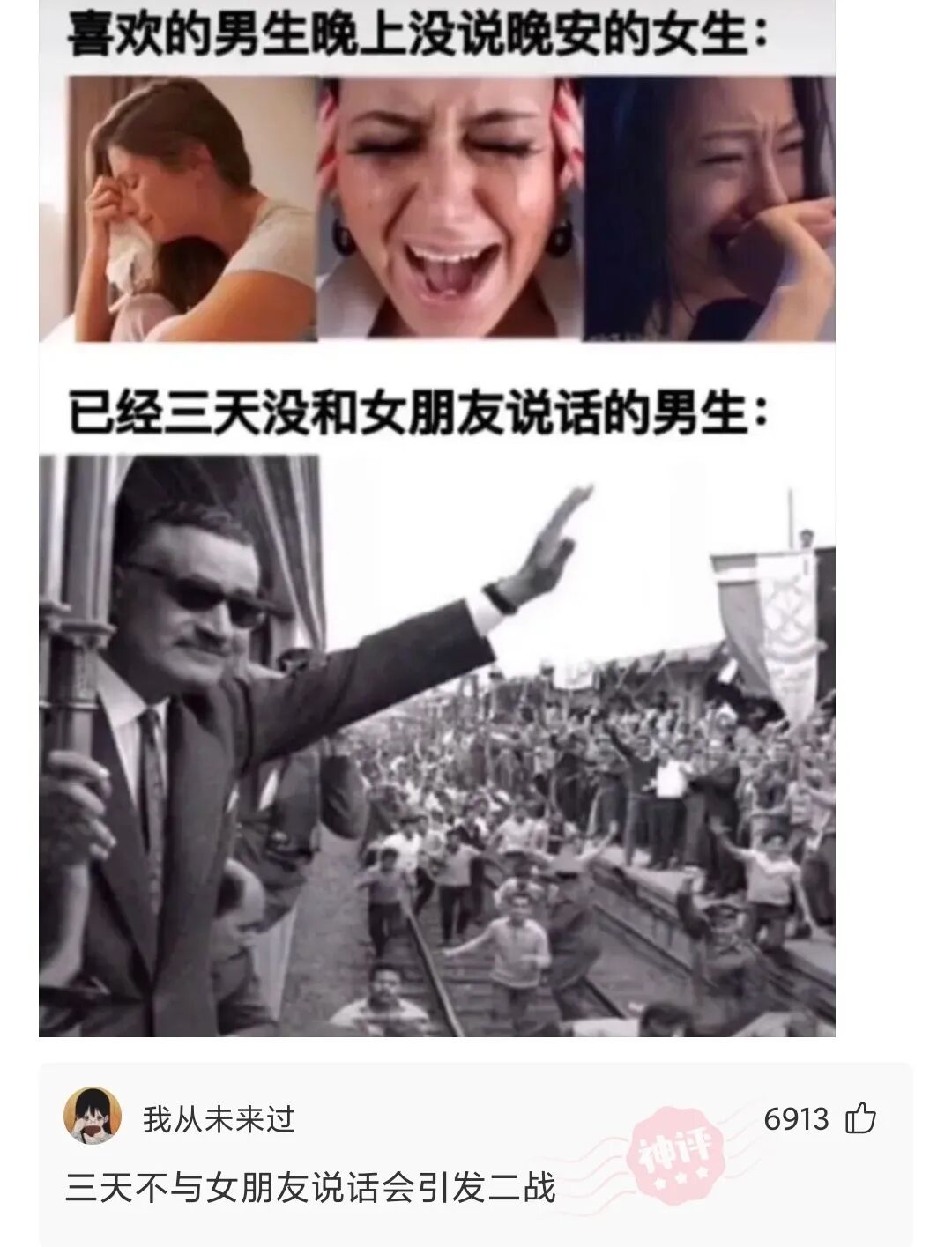 喜欢的男生晚上没有说晚安的女生,和已经三天没和女朋友说话的男生。