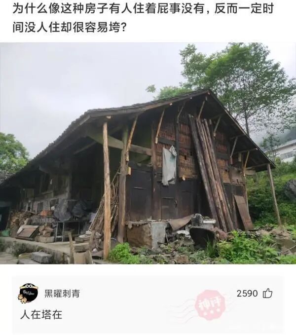 为什么像这样的房子,在一定时期内有人居住,一点事都没有,反而没有人居住的情况下,很容易倒塌呢?