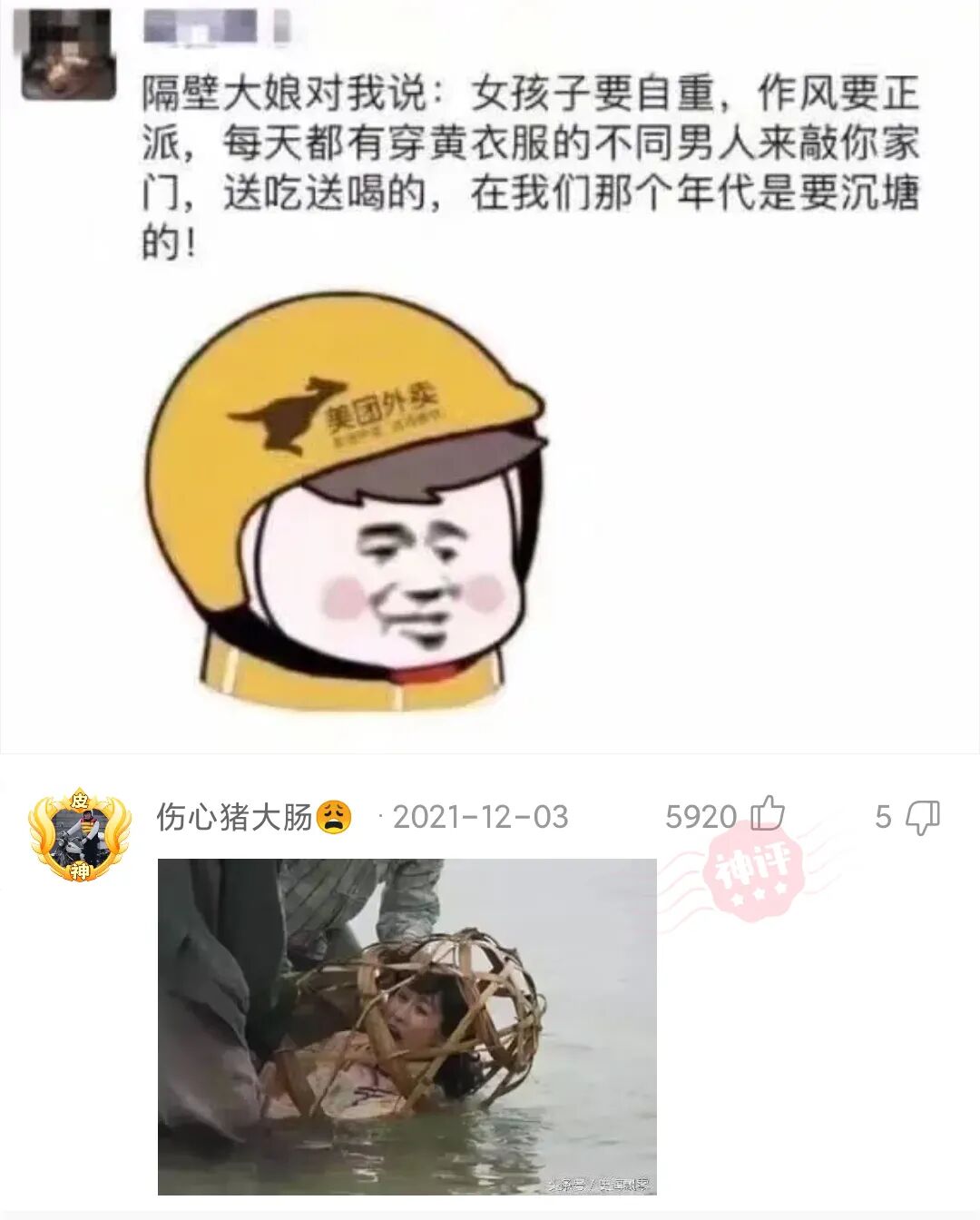 隔壁大娘对我说:女孩子要自重,作风要正派,每天都有穿黄衣服的不同男人来敲你家门,送吃送喝的,在我们那个年代是要沉塘的!
