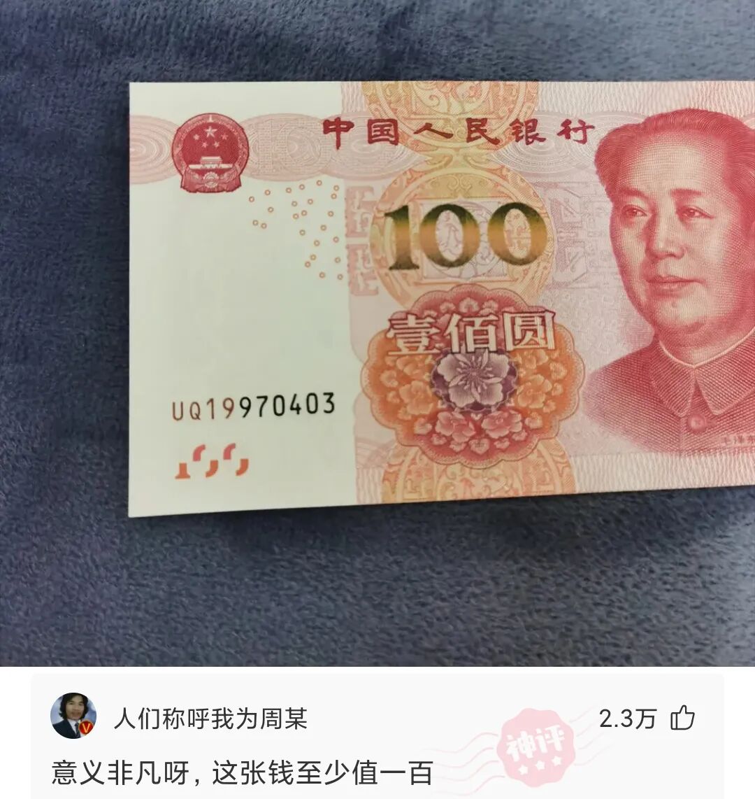 寻找1997年04月03的女孩子,我准备把这张100块的人民币送给她!
