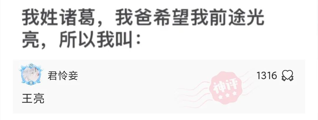 我姓诸葛,我爸希望我前途光亮,所以我叫……