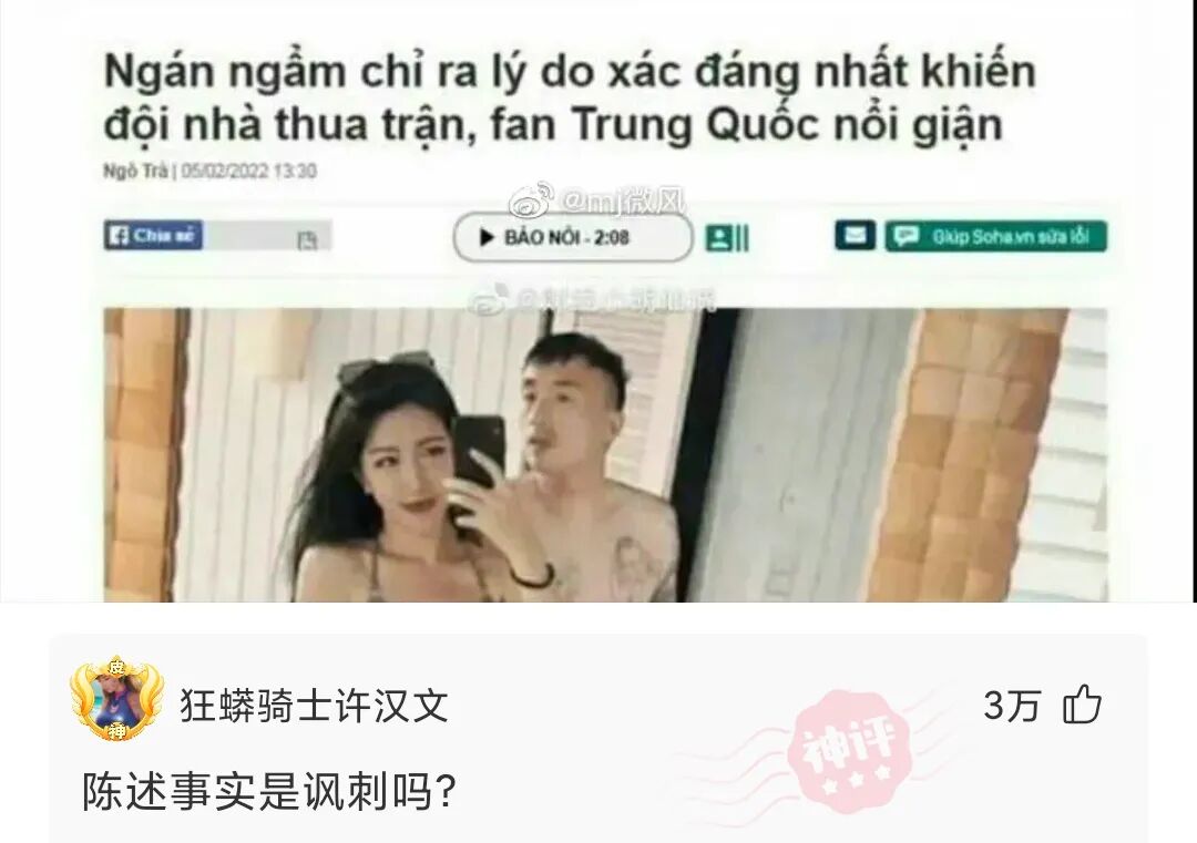越媒讽刺男足:中国球员肚子很大,老婆漂亮,赚钱超多,但实力太差。