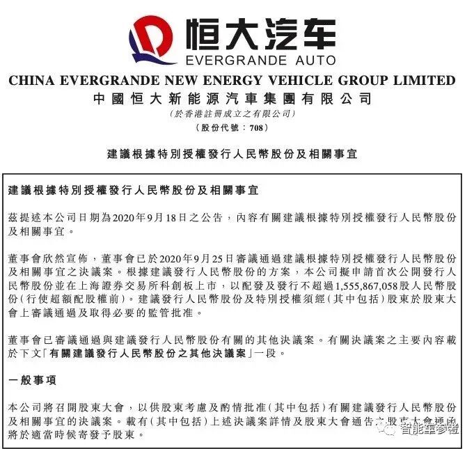 2020年9月25日,恒大汽车突然发布公告要冲刺科创版。
