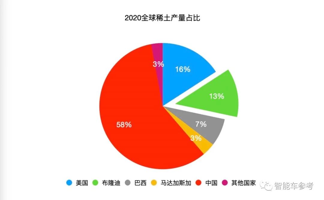 2020年,中国的稀土产量为14万吨,占全球稀土供应量的58.3%。