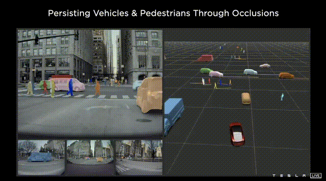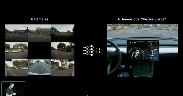 接下来,Karpathy 描述了纯视觉方案的历史,以及方案发展到今天的逻辑,他展示了一段特斯拉处理其图像数据的视频。