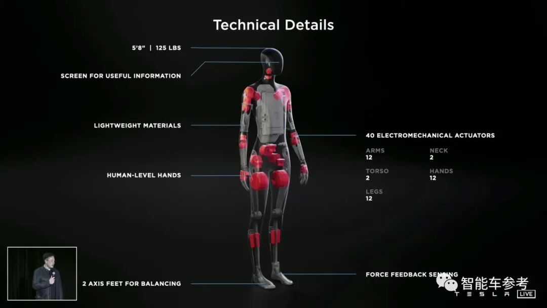 汽车机器人,搭载了特斯拉包含芯片在内的软硬件系统,但跟百度的不同,不像汽车更像人。