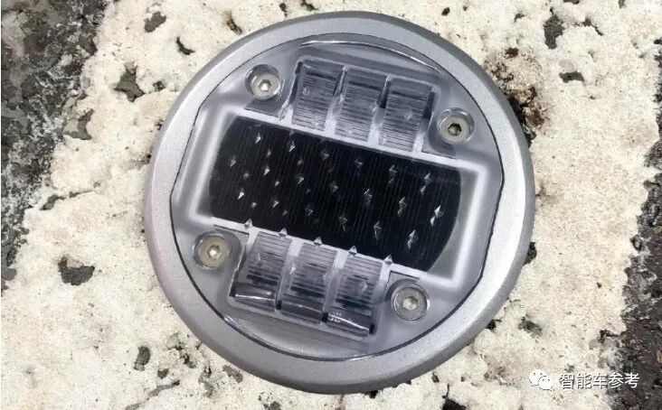 一个形似道钉的信标,巴掌大小,安装在车道线上就能感知多条车道,收集来往车辆的信息。